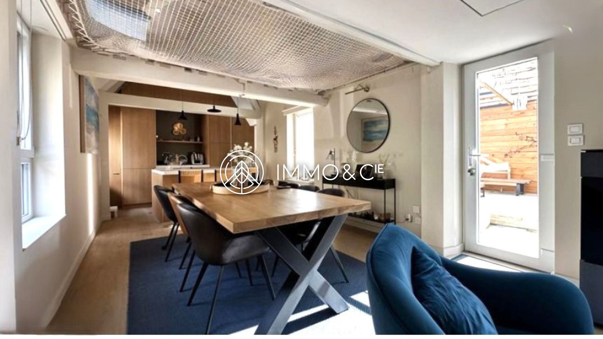 Un filet détente en continuation de la mezzanine permet de se poser et de regarder un film par le vidéo projecteur, moment suspendu privilégié!!!