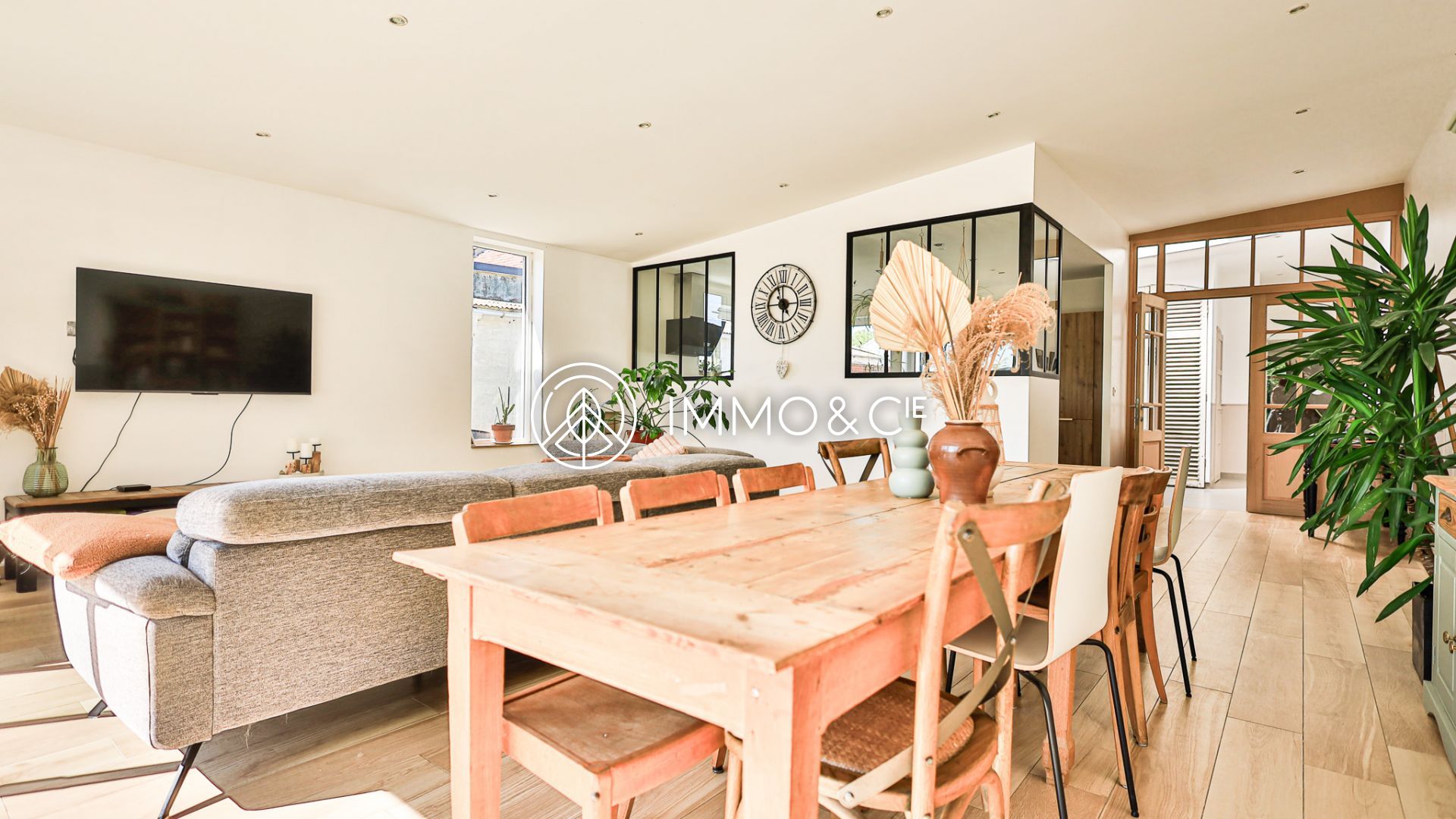 Dès l’entrée, on ressent cette atmosphère apaisante, ce mélange subtil entre charme, confort et fonctionnalité. Le rez-de-chaussée s’ouvre sur un vaste espace de vie de près de 60 m², baigné de lumière grâce à de larges ouvertures tournées vers le jardin. Le salon invite à la détente, la cuisine semi-ouverte, moderne et équipée, appelle au partage et aux bons repas.