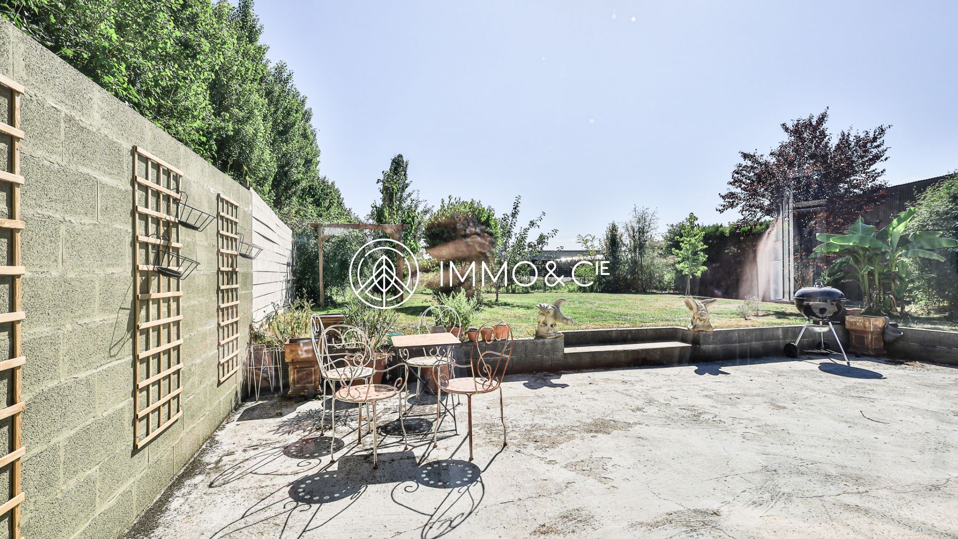 Une terrasse généreuse de 50 m², orientée plein Sud-Ouest, qui invite aux apéritifs d’été, aux repas en famille, aux rires entre amis. Le jardin de 532 m², clos et sans vis-à-vis, est une promesse de tranquillité, de jeux, de siestes sous les arbres.
