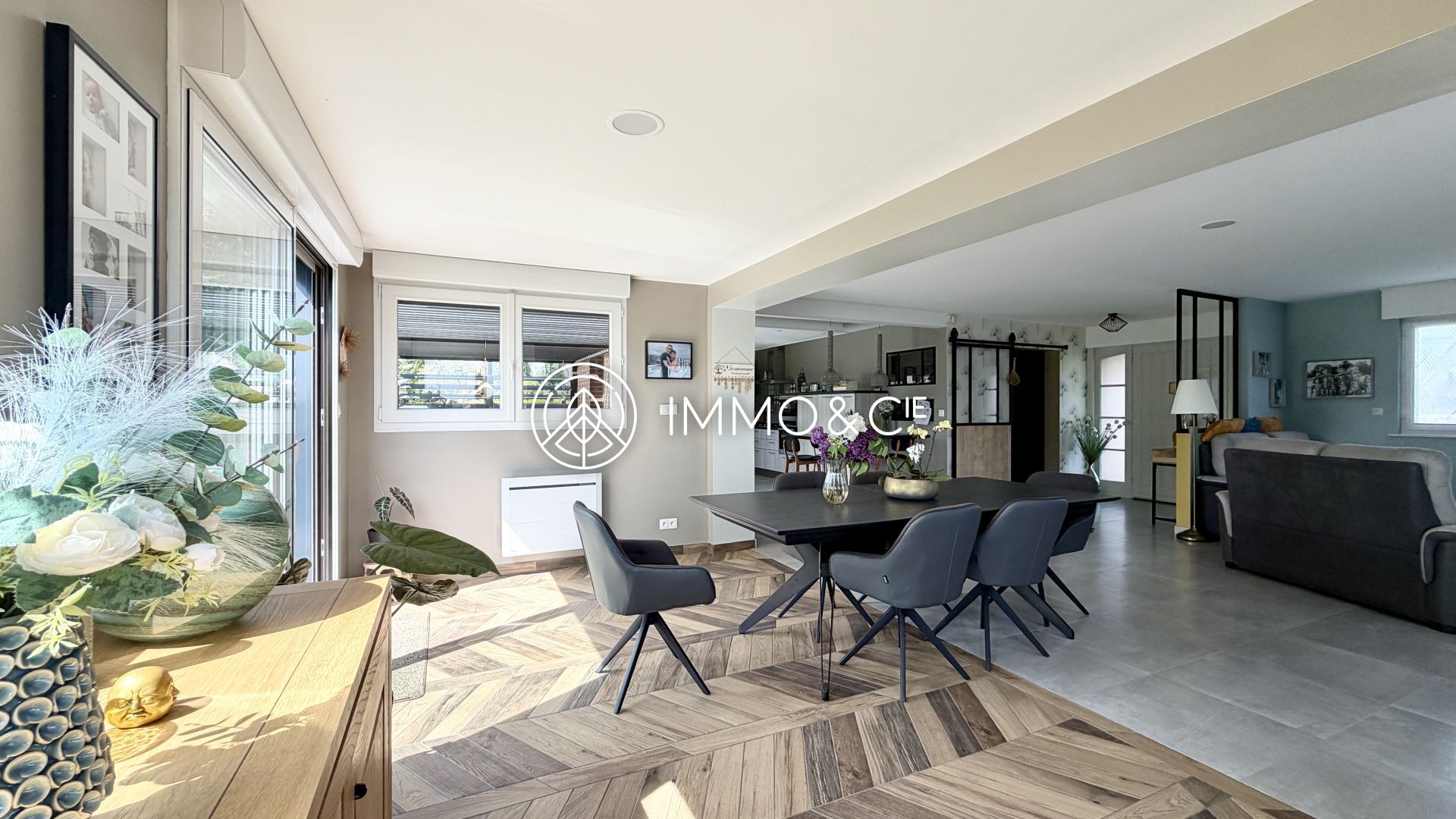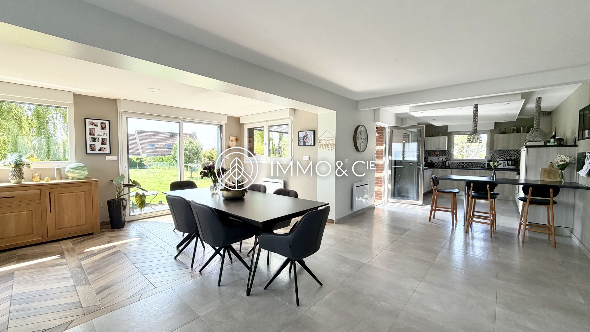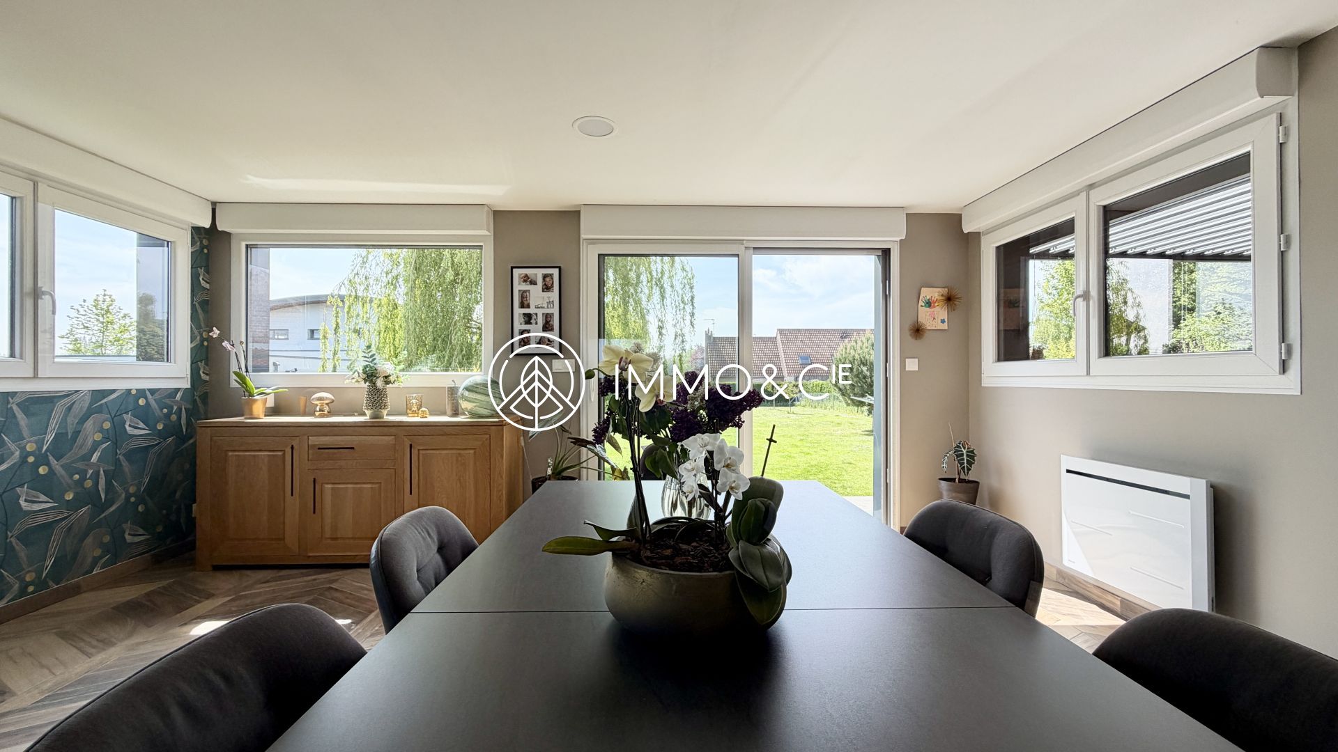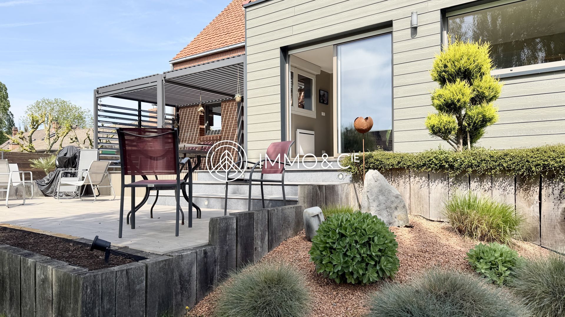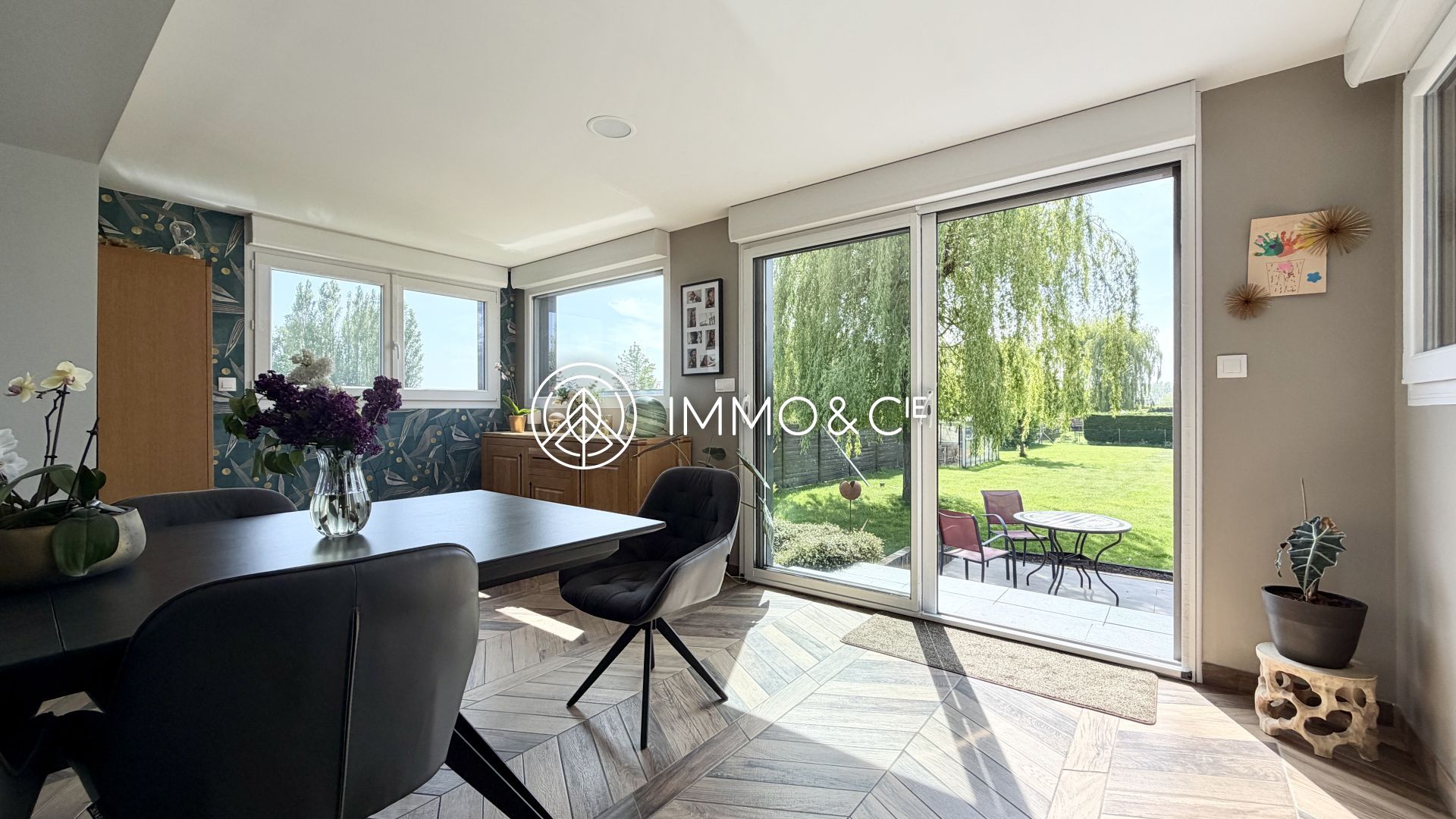 Dès l'entrée, vous serez séduit par un bel espace de vie, baigné de lumière de part ses nombreuses ouvertures, avoisinant les 60 m², composé d'un séjour convivial et son poêle à granules de bois, d'une salle à manger accueillante ainsi que d'une cuisine ouverte entièrement équipée et aménagée, le tout dévoilant un jardin magnifique, soigneusement entretenu, clos et sans vis-à-vis, orienté Sud-Ouest. La grande terrasse à deux niveaux est l’endroit parfait pour profiter des soirées d’été en famille ou entre amis.