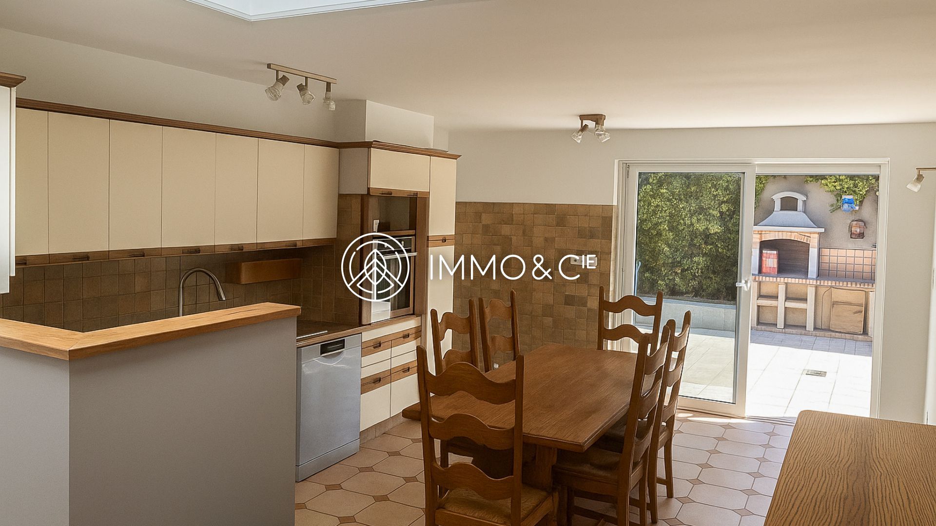 Maison semi-plain-pied, semi-mitoyenne, 105 m², 3 chambres, 1 bureau, 2 extérieurs, Cave, Stationnement privatif, garage