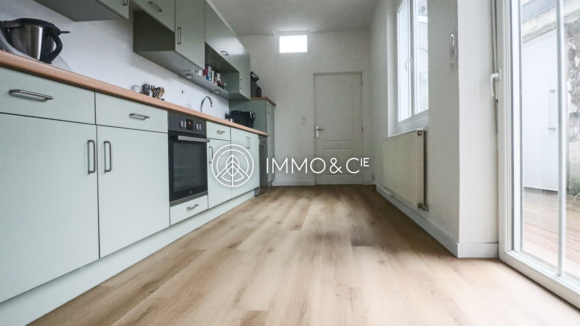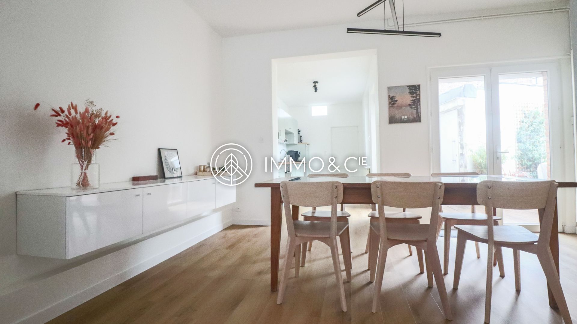 Au rez-de-chaussée, un hall d’entrée vous amènera directement dans la salle à manger spacieuse donnant sur une cuisine équipée ainsi que sur un salon lumineux grâce à sa lumière traversante.