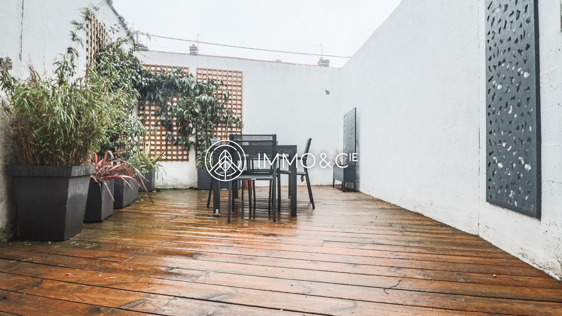 Par une porte vitrée, vous accéderez à une jolie terrasse en bois de 25 m² offrant un espace paisible pour profiter des saisons.