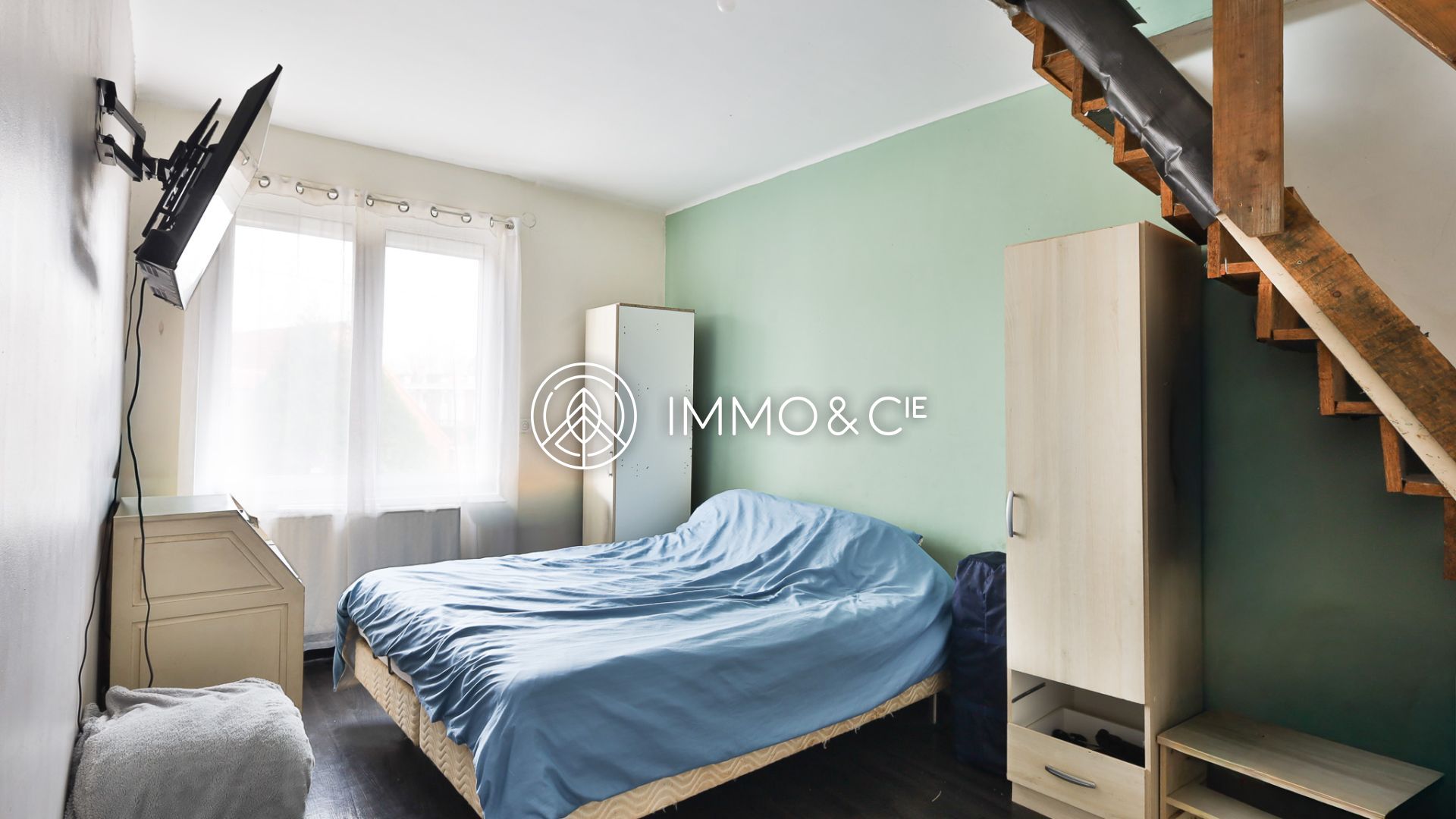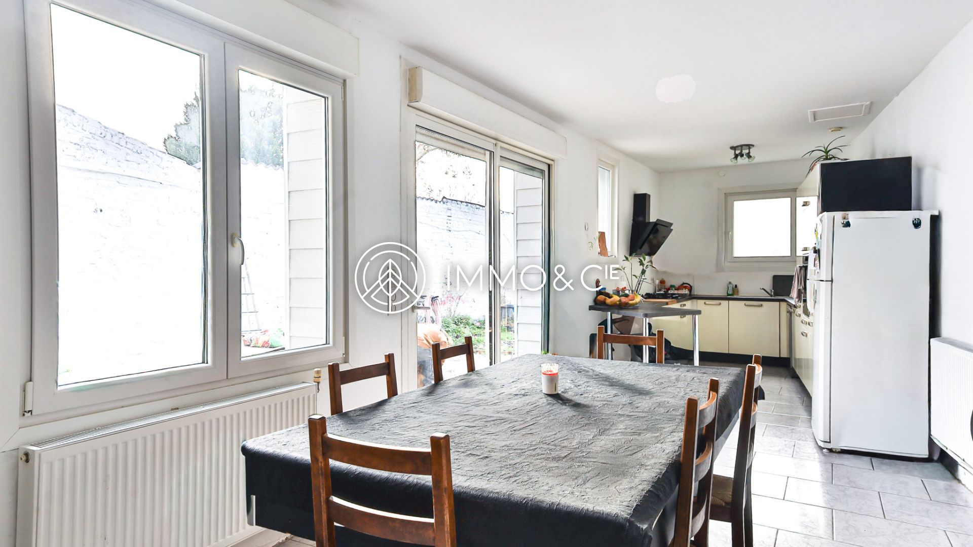 - Pont-à-MarcqNOUVEAUTE : Centre village, maison mitoyenne de 120m2 sur 195m2, 4 chambres, 1 sdb, cave, jardin, garage