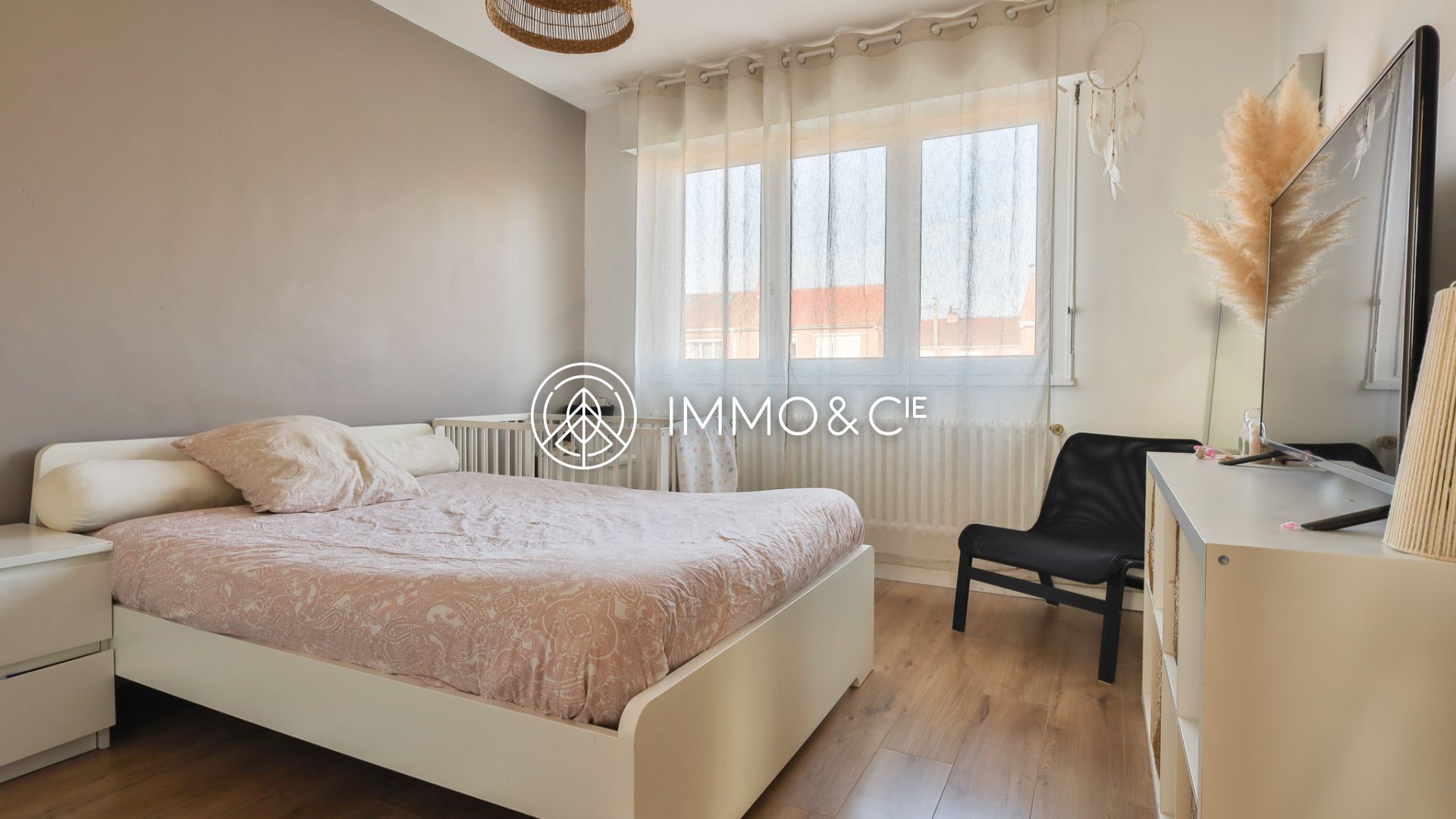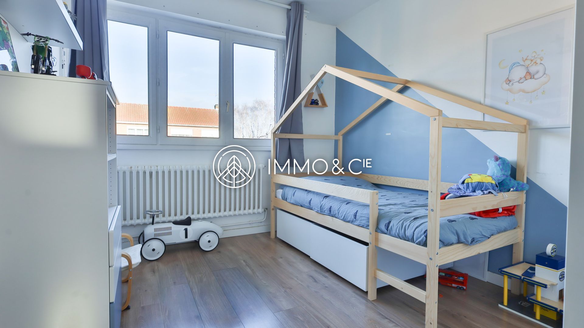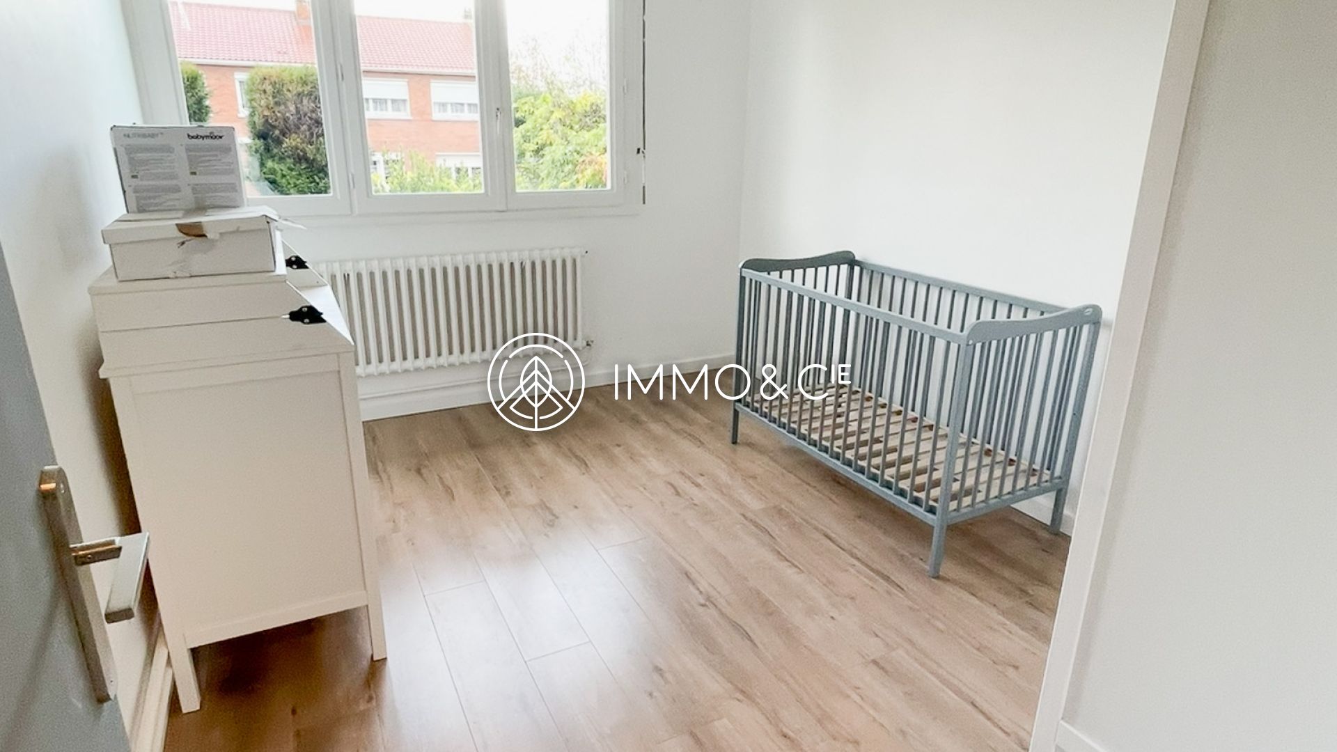 maison semi mitoyenne, 3 chambres, sdb, cave, garage, jardin.