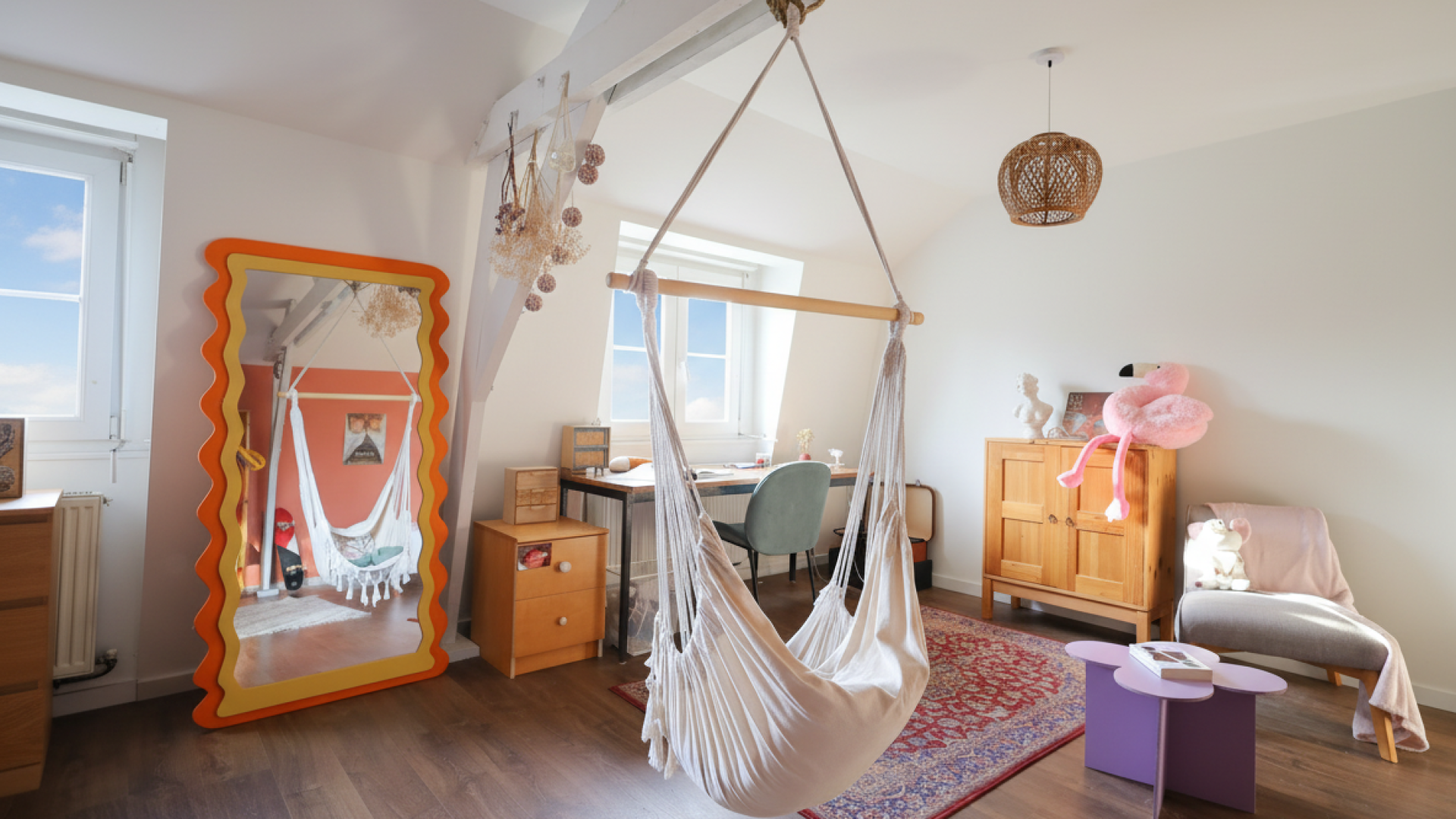 À l’extérieur, un jardin orienté Sud-Ouest s’épanouit, véritable écrin de verdure où le temps semble suspendu. Imaginez des après-midis ensoleillés, à profiter de la quiétude du lieu, avec un accès direct au chemin de halage, parfait pour flâner le long de la Deûle, admirer le paysage changeant et se laisser porter par le murmure de l’eau.