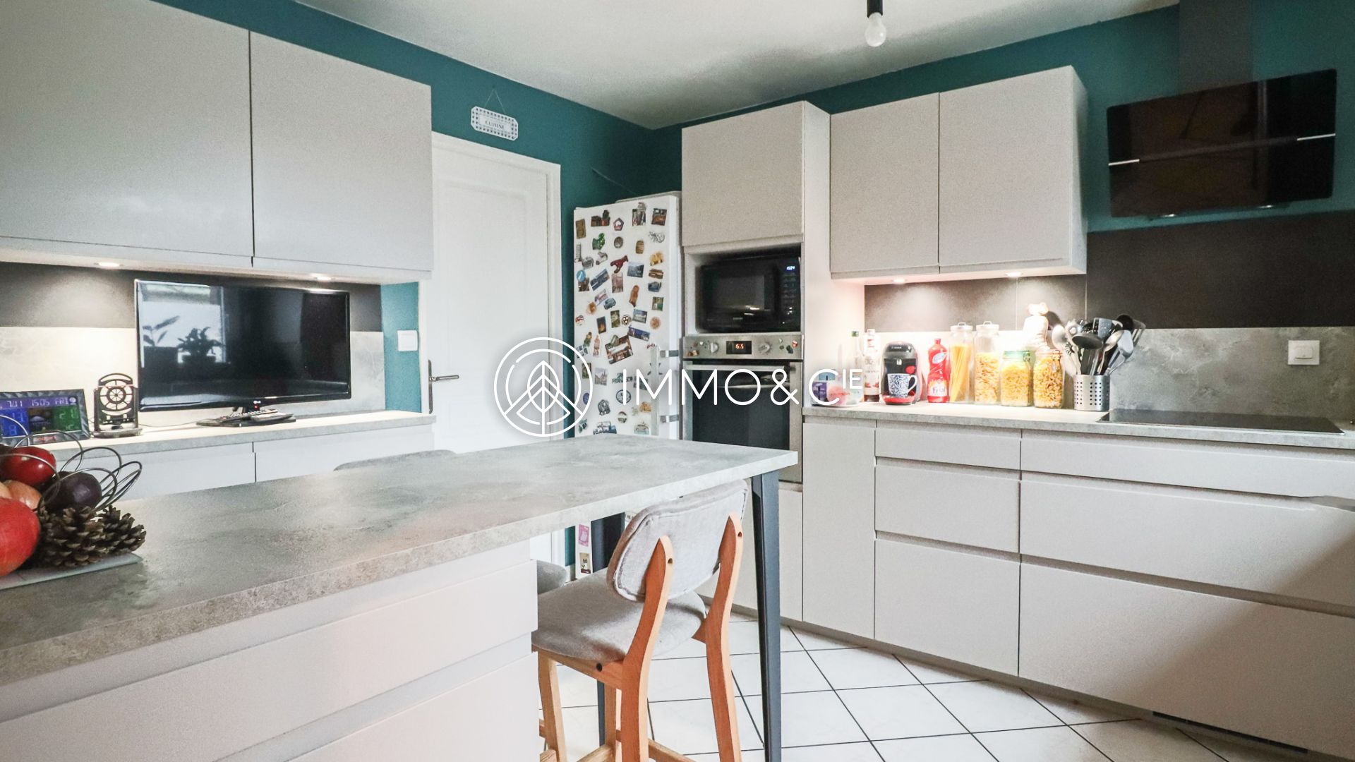 Une cuisine fermée de 11 m², équipée et rénovée il y a deux ans, s’ouvre sur un salon/séjour lumineux de 33 m², baigné de lumière grâce à de grandes baies vitrées donnant sur un jardin verdoyant et fleuri.