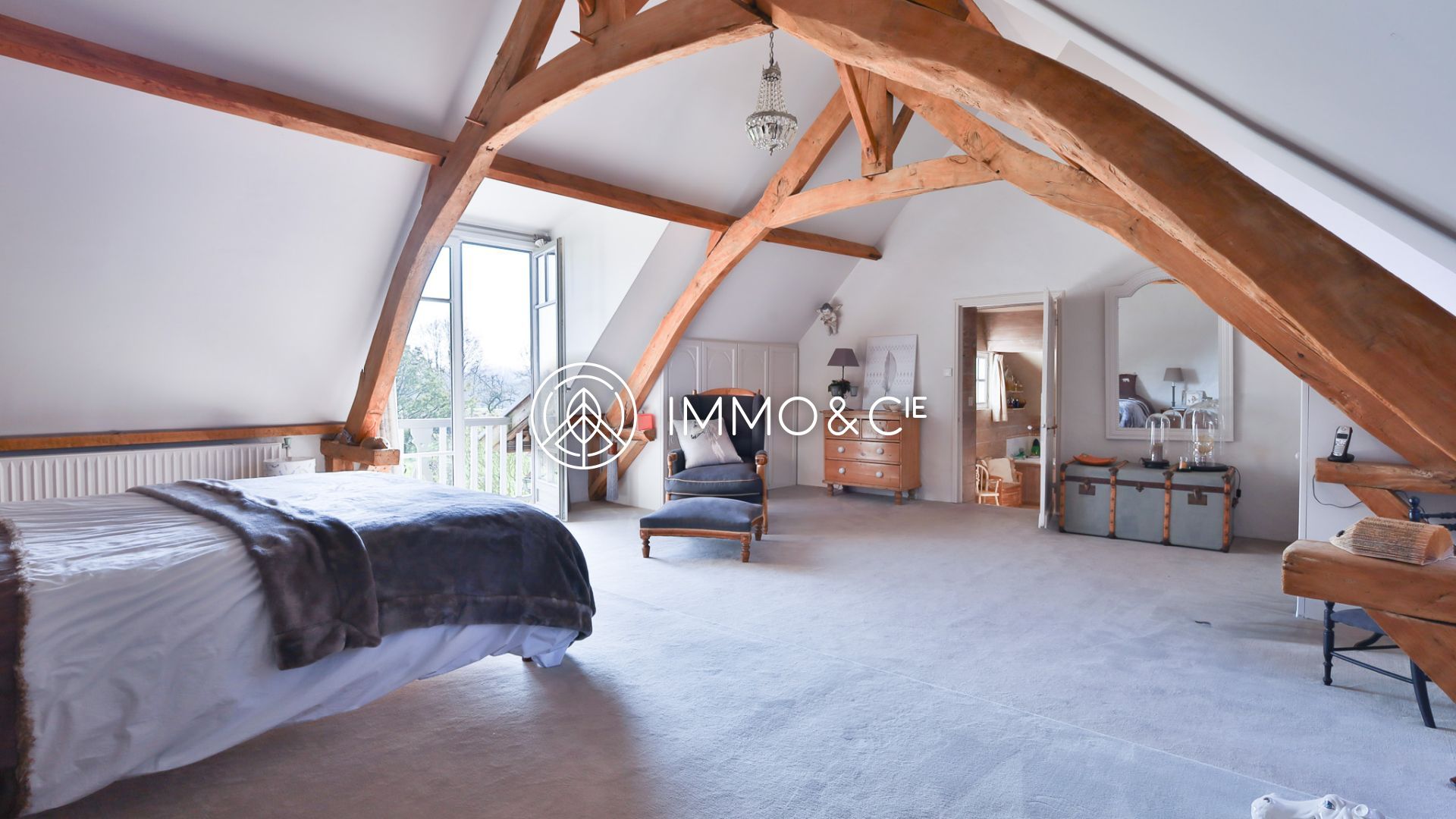 Le charme des poutres apparentes, les matériaux de qualité et les volumes harmonieux font de cette propriété un véritable coup de cœur.